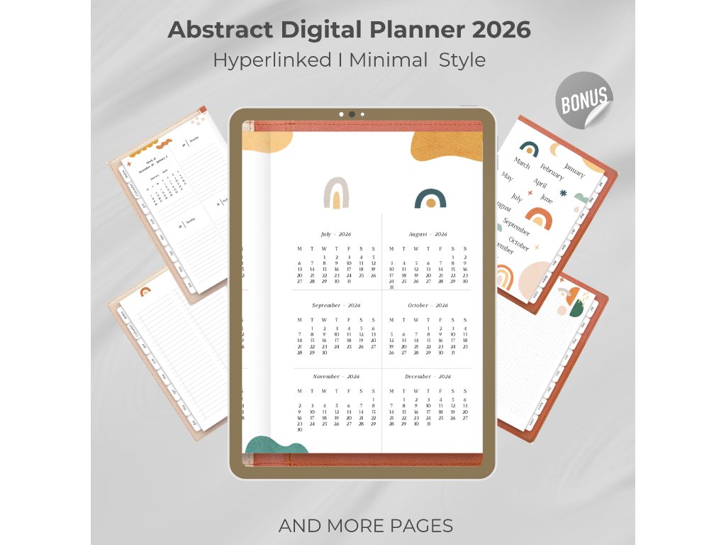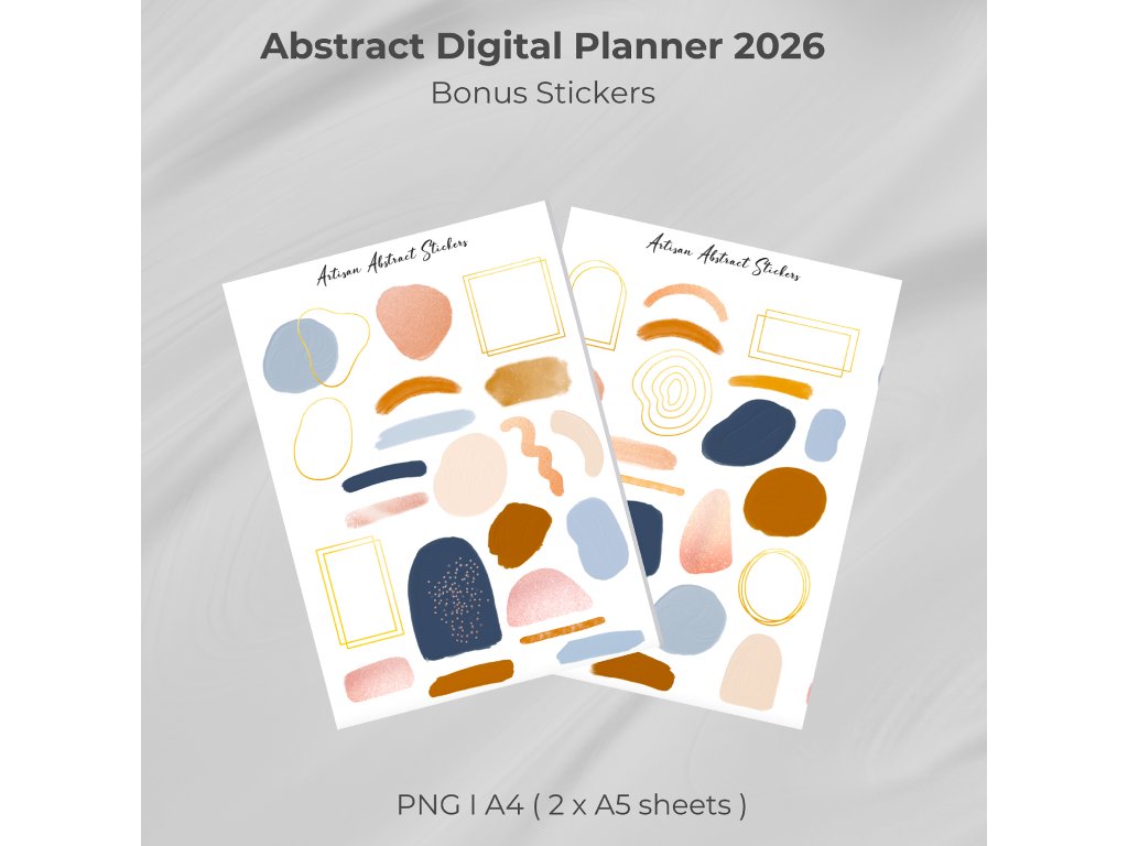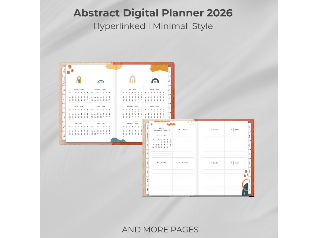 Abstract Digitálny Planner 2026 | Minimalistický hyperlinked plánovač + bonus nálepky