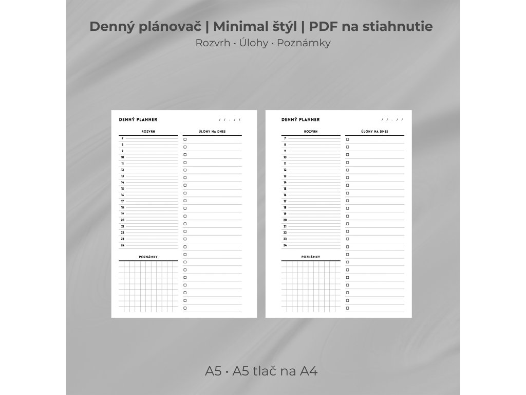 Denný plánovač – Minimal Style (PDF na stiahnutie, SK / EN)