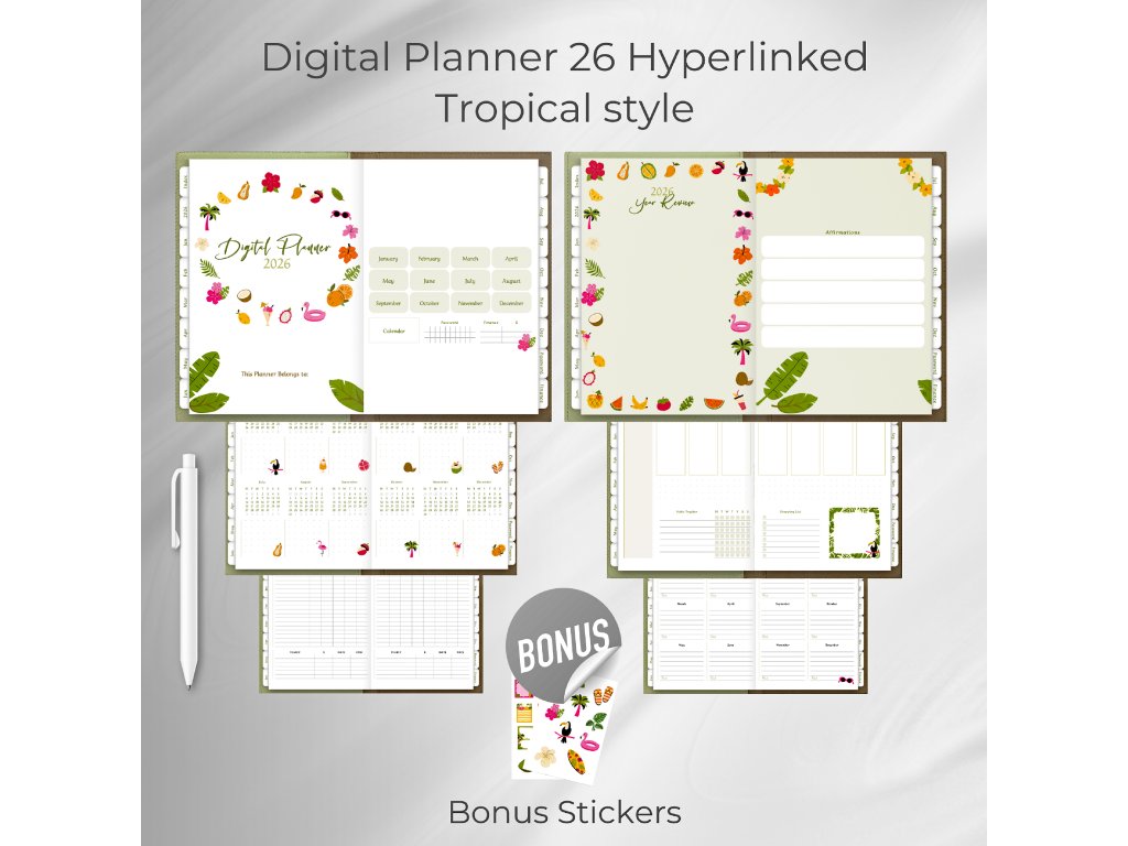 Digitálny plánovač 2026 Tropical | 440 strán | Denný, mesačný, ročný prehľad + bonus nálepky