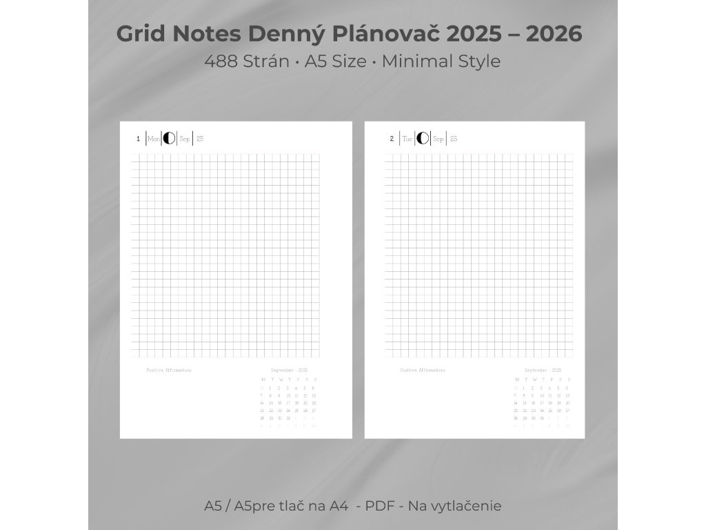 Grid Notes Denný plánovač 2025–2026 | 488 strán | Minimal štýl