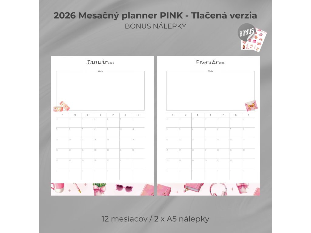 Mesačný planner 2026 Pink – tlačená verzia A5