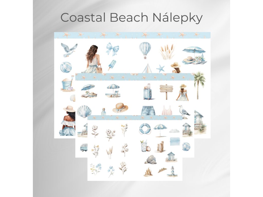 Prémiové samolepky v jemnom pastelovom Coastal Beach štýle.