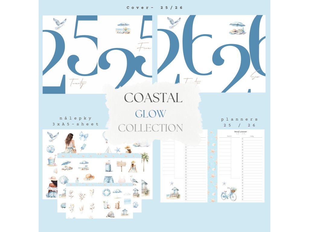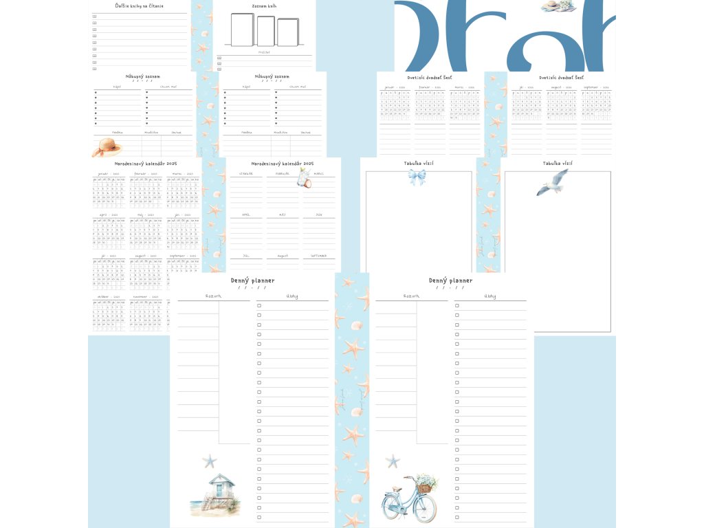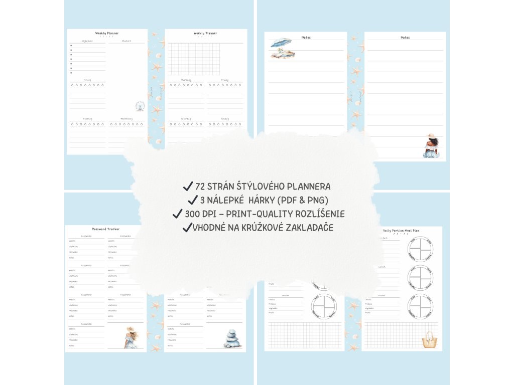 Pastelový plánovač SET Coastal Beach + nálepky | Digitálna verzia (PDF / PNG)