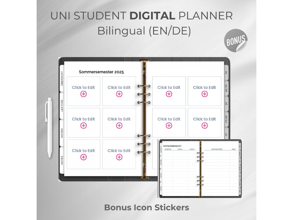 Študentský UNI Digitálny Planner 2025 – 2028 Bilingual (EN/DE)