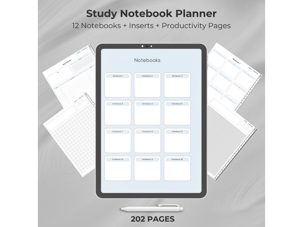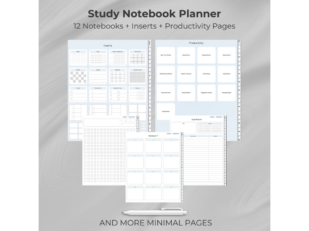 Study Notebook Planner | Digitálny hyperlinked študijný plánovač – soft blue minimal