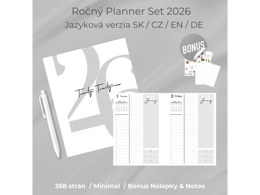 Minimal 2026 ročný planner dátovaný 368 strán - LISTOVÁ NÁPLŇ A5 ( Tlačená verzia )