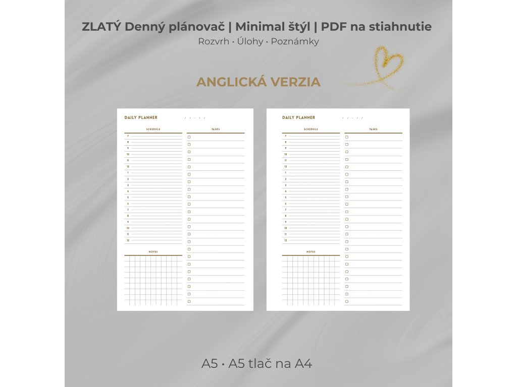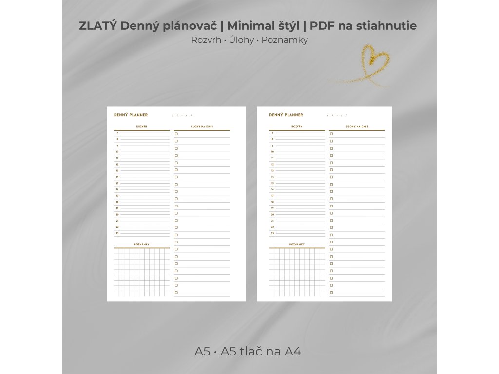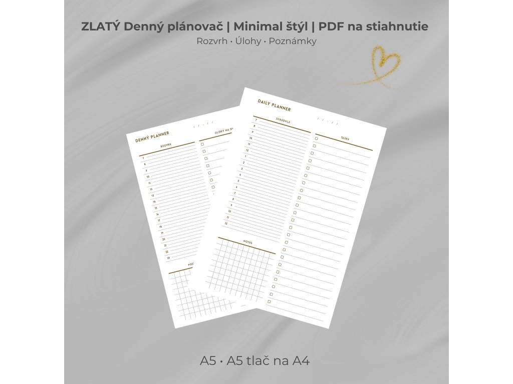 Zlatý Denný plánovač – Minimal Style (PDF na stiahnutie, SK / EN)