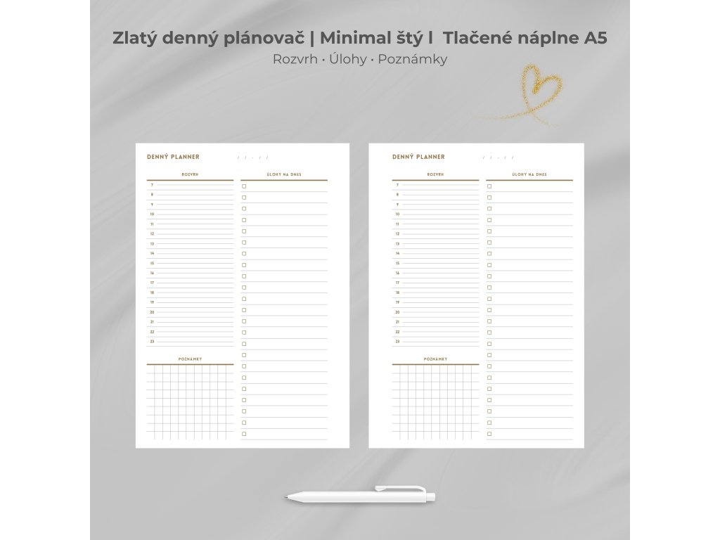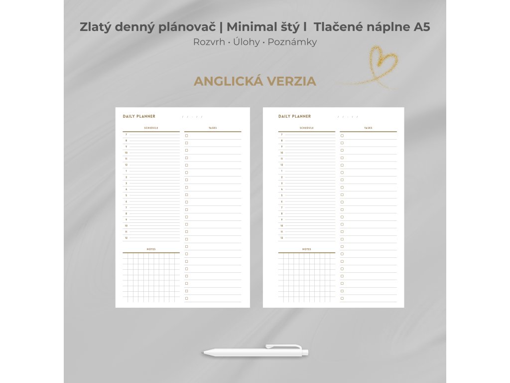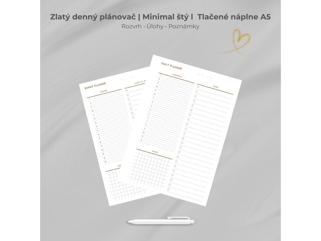 ZLATÝ Denný plánovač | Minimal štýl | Prémiová tlačená verzia